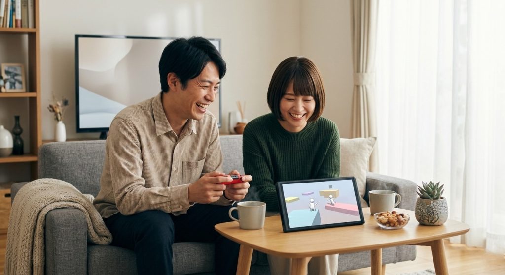 操作に戸惑い、キャラクターが変な方向に転ぶたびに、リビングにはきっと笑顔が溢れるはずです。その笑顔こそが、暮らしを少し豊かにし、夫婦の絆をより一層深めてくれる最高の宝物になります。